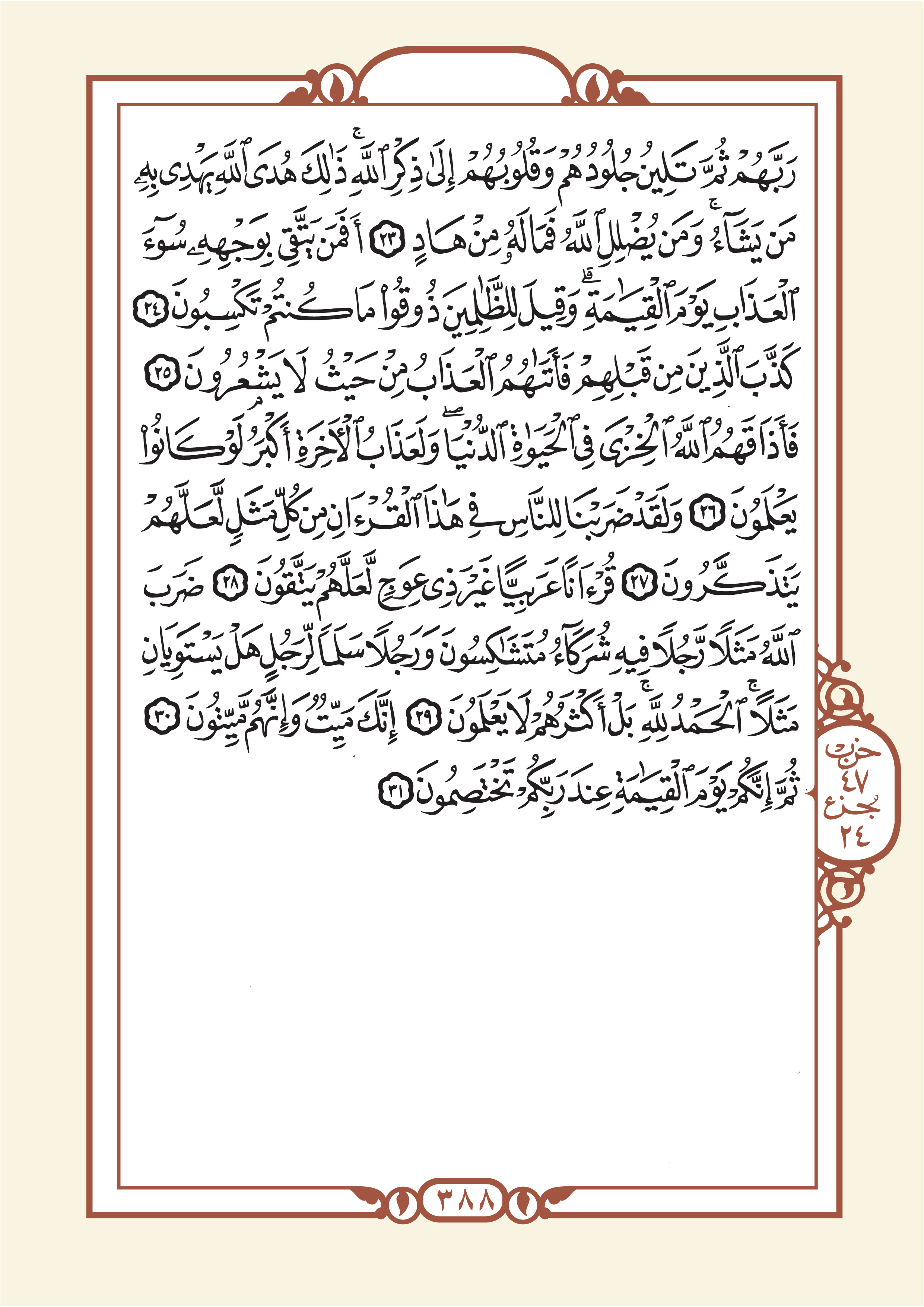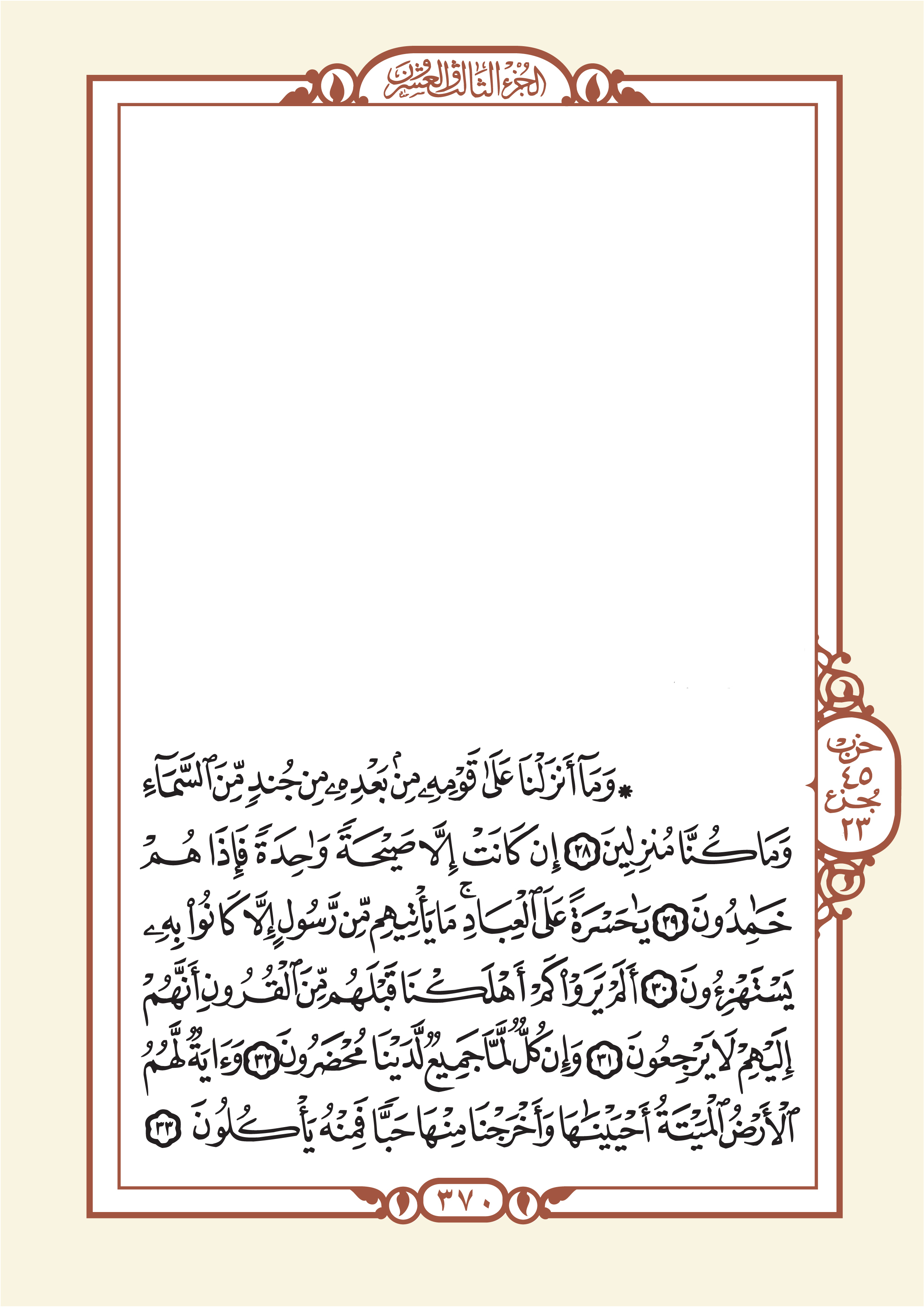 الجزء الثالث والعشرون: يبدأ بآية رقم 28 من سورة يس وينتهي بآية رقم 31 سورة الزمر.