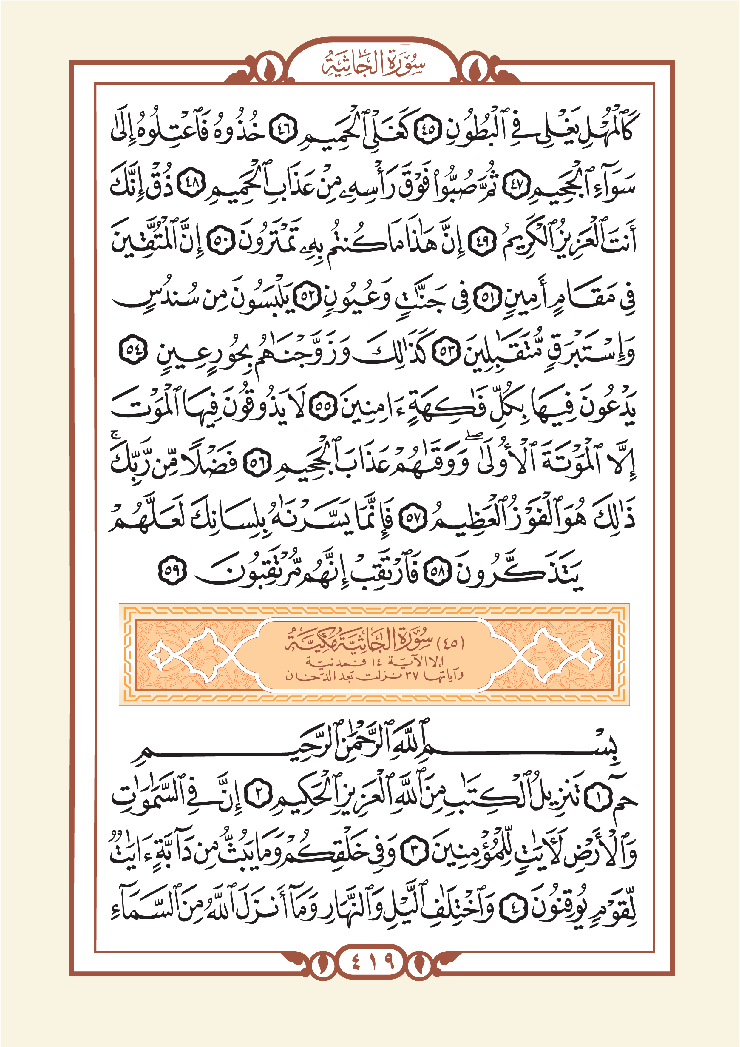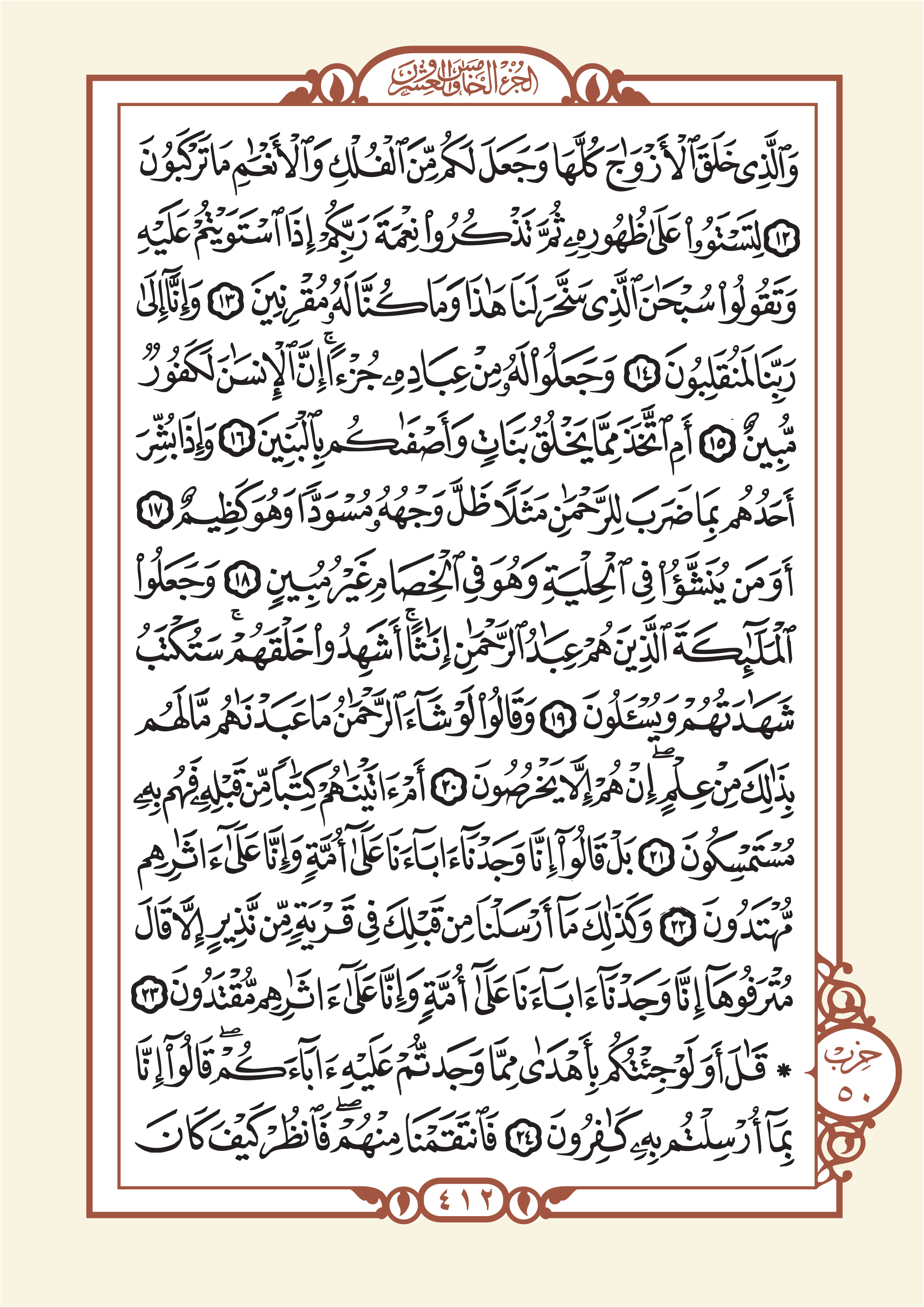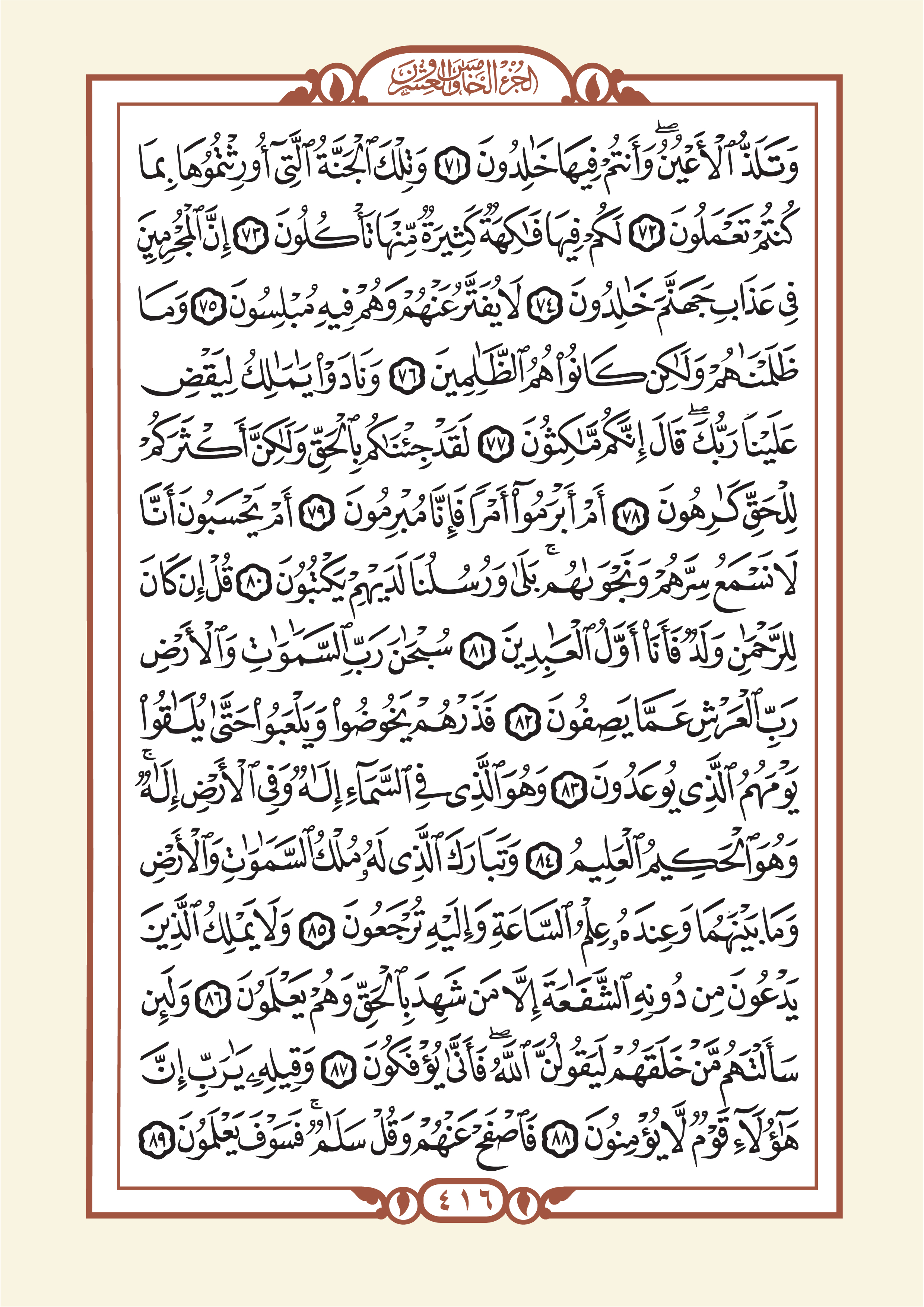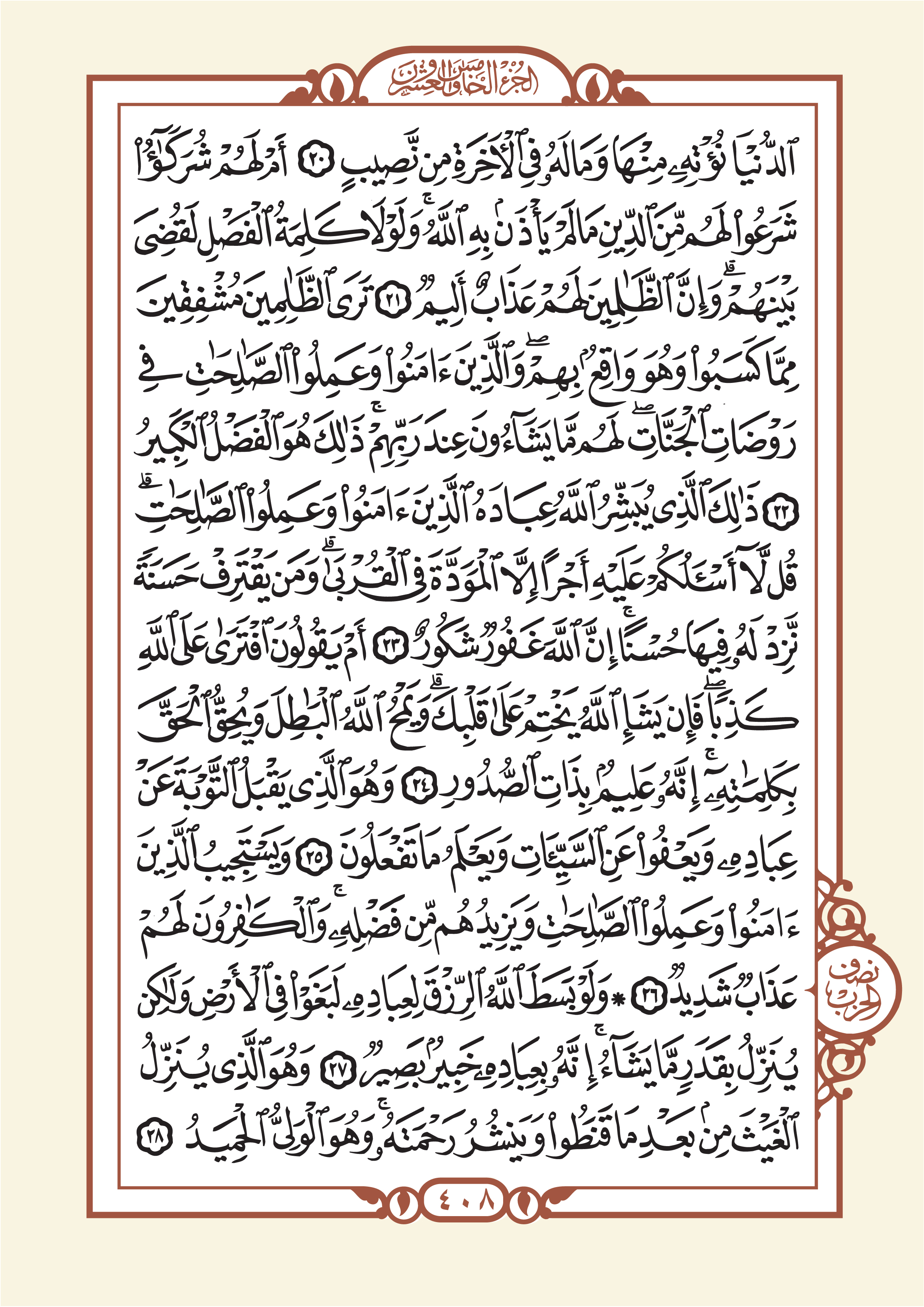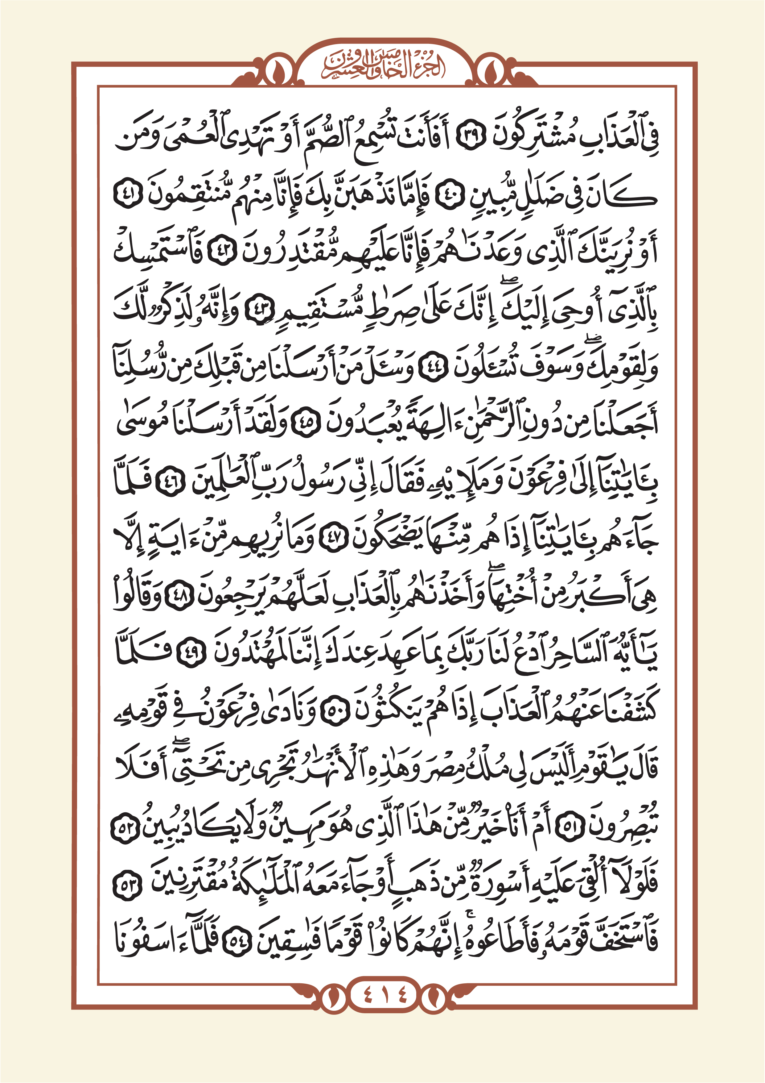 الجزء الخامس والعشرون: عبارة عن تكملة لسورة فصلت آية 47 وينتهي بآية 37 من سورة الجاثية.