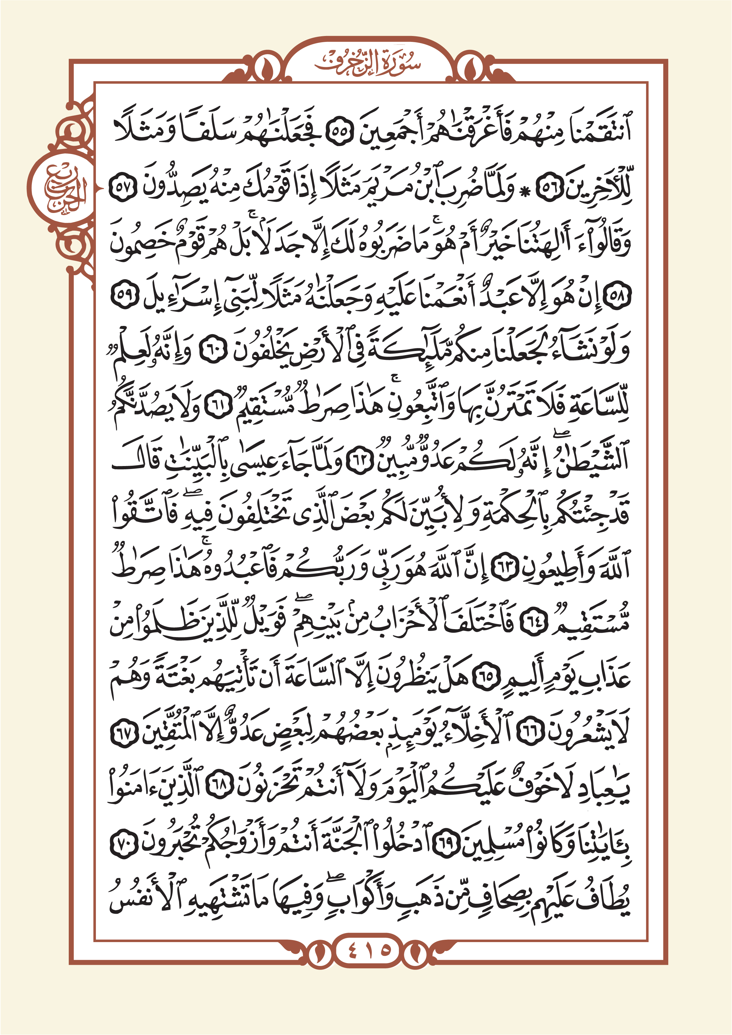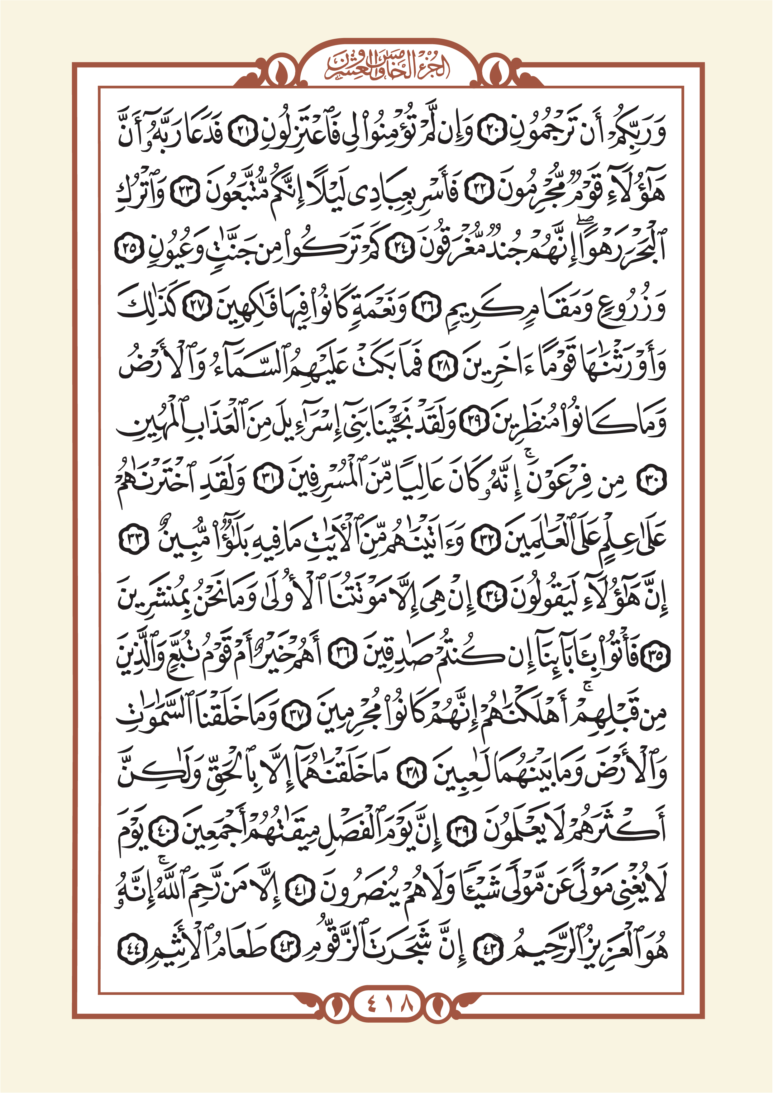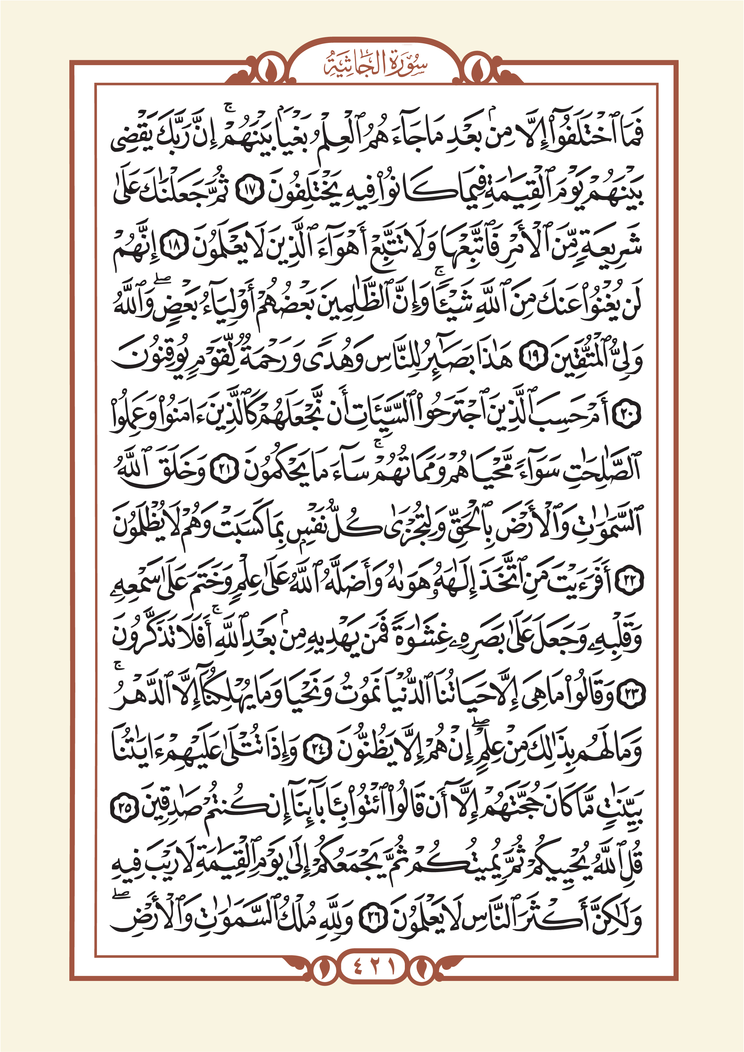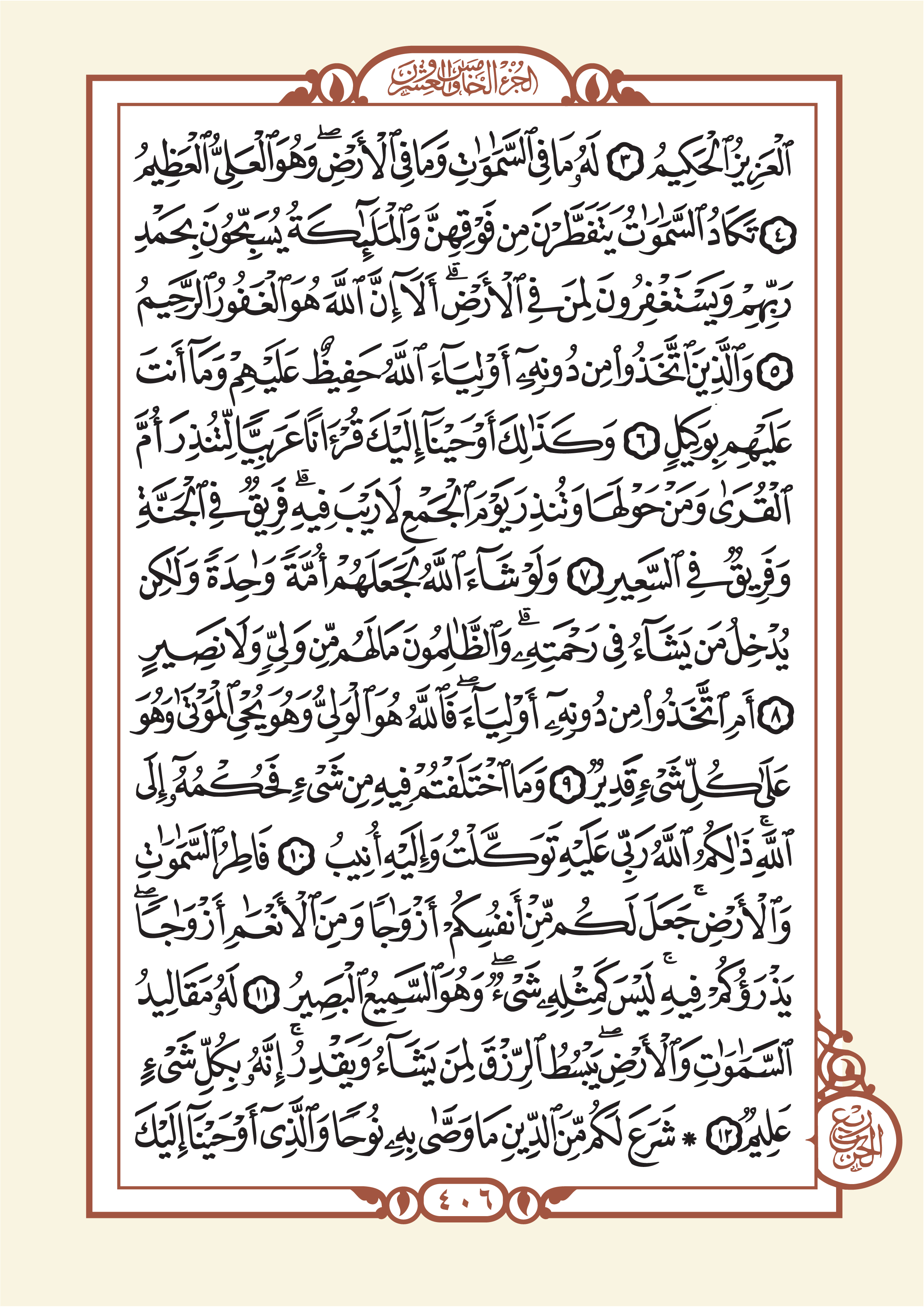 الجزء الخامس والعشرون: عبارة عن تكملة لسورة فصلت آية 47 وينتهي بآية 37 من سورة الجاثية.